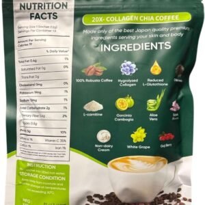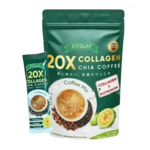 FITGUM 20X Collagen Chia Coffee Mix – 10 Sachets – with Chia Seeds, Collagen & Coffee Blend